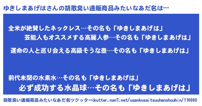 | 意味不明あだ名 | 『ゆきしまあげはフォーエバー』 |