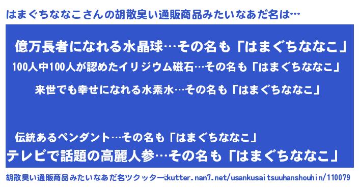 | 伝説のあだ名 | 『古より伝わる勇者はまぐちななこ』 |