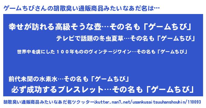 | 意味不明あだ名 | 『住所不定無職ゲームちび(9歳)』 |