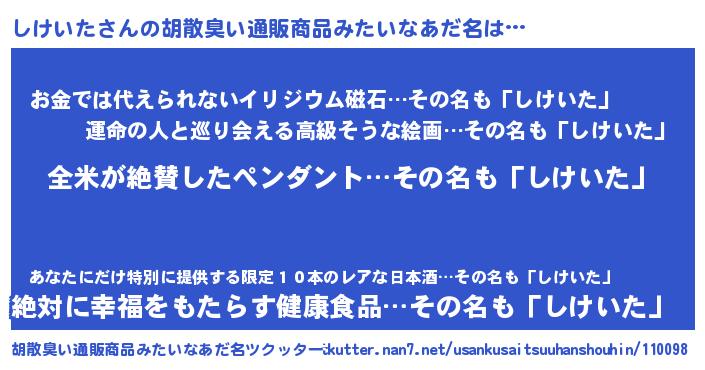 | ヘコむあだ名 | 『しけっちょ』『しけいた(爆)』 |