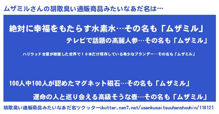 | 意味不明あだ名 | 『住所不定無職ムザミル(81歳)』 |