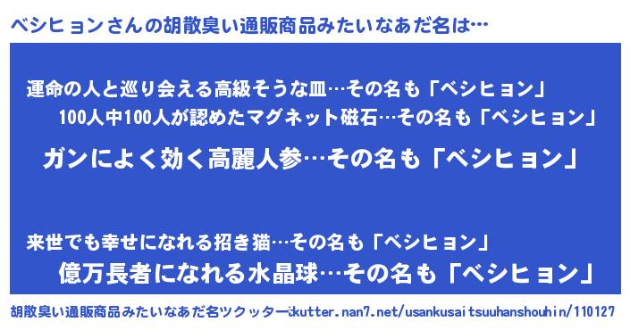 | ヘコむあだ名 | 『牛乳』『べシもー』『べシを』 |