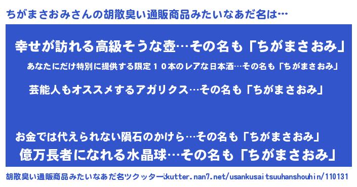 | 意味不明あだ名 | 『自称ちがまさおみ』 |