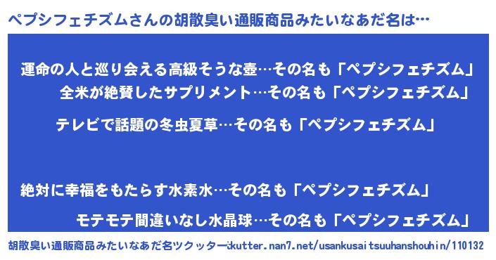 | ヒーロー風カッコイイあだ名 | 『サイバー戦士ペプシフェチズム』 |