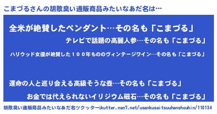 | 意味不明あだ名 | 『住所不定無職こまづる(7歳)』 |