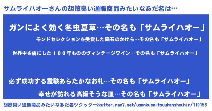 | 意味不明あだ名 | 『住所不定無職サムライハオー(10歳)』 |