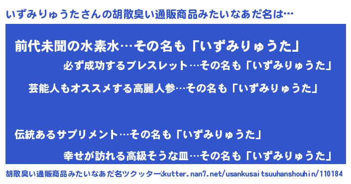 | 意味不明あだ名 | 『自称いずみりゅうた』 |