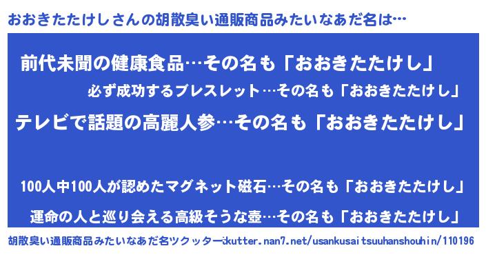 おおきたたけしさんの胡散臭い通販商品みたいなあだ名をツクッター!