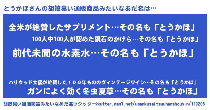 | 意味不明あだ名 | 『永久保存とうかほ』『自称とうかほ』 |