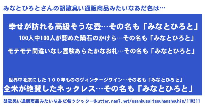 | 恥ずかしいあだ名 | 『プリティーみなとひろと』『みなっちょ』 |