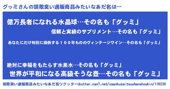 | 肩書あだ名 | 『グッミ大佐』『グッミディレクター』 |