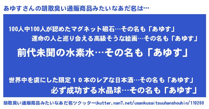 | ヘコむあだ名 | 『あゆす(苦笑)』『あゆにー』 |