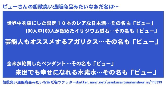 | ヘコむあだ名 | 『ビュー(笑)』『ビュっぺ』 |