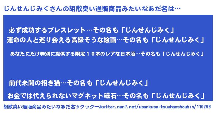 | 意味不明あだ名 | 『住所不定無職じんせんじみく(59歳)』 |