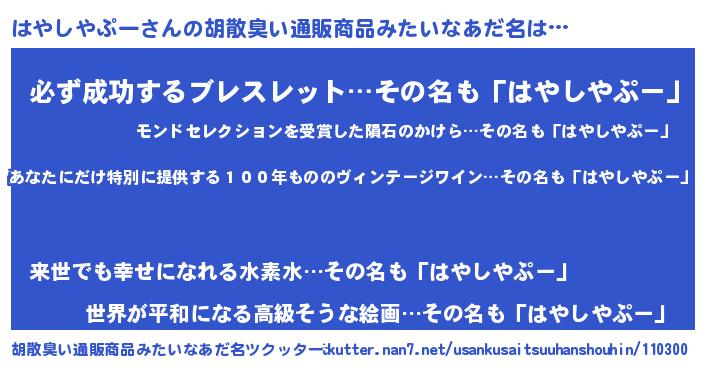 | 女子向けラノベタイトル風あだ名 | 『はやしやぷーの玉の輿計画!』 |