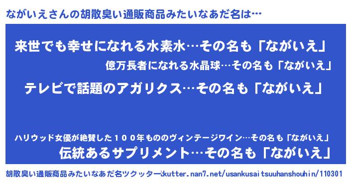 | ヘコむあだ名 | 『ながいえ(苦笑)』『ながぷりん』 |