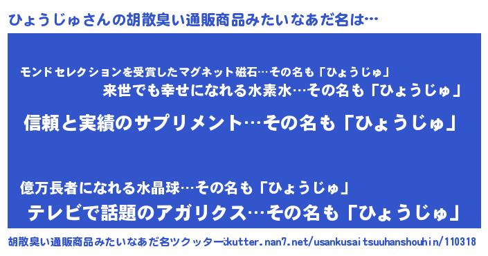 | 意味不明あだ名 | 『とにかく怪しいひょうじゅ』 |
