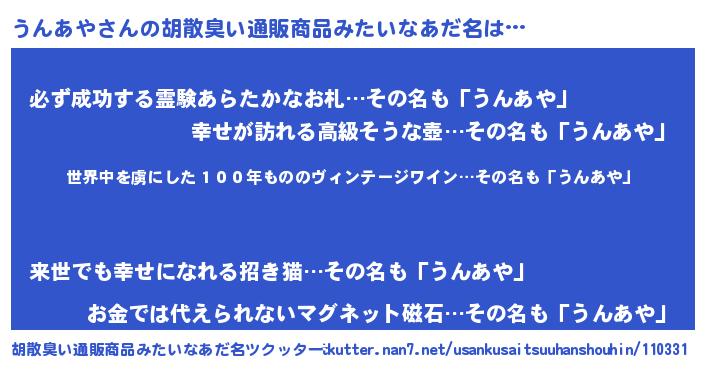 | 意味不明あだ名 | 『住所不定無職うんあや(2歳)』 |