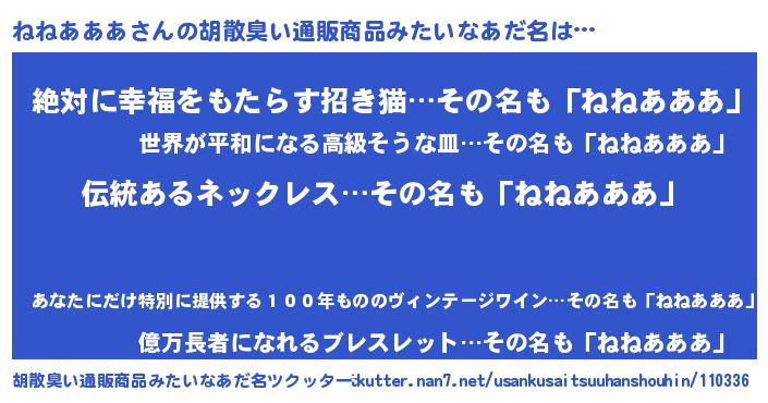| ヘコむあだ名 | 『ねねっぺ』『ねねあああ(小並感)』 |