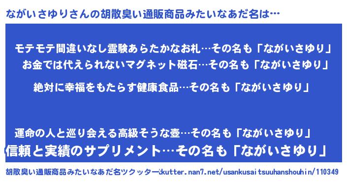 | ヘコむあだ名 | 『ながいさゆり(笑)』『ながもー』 |
