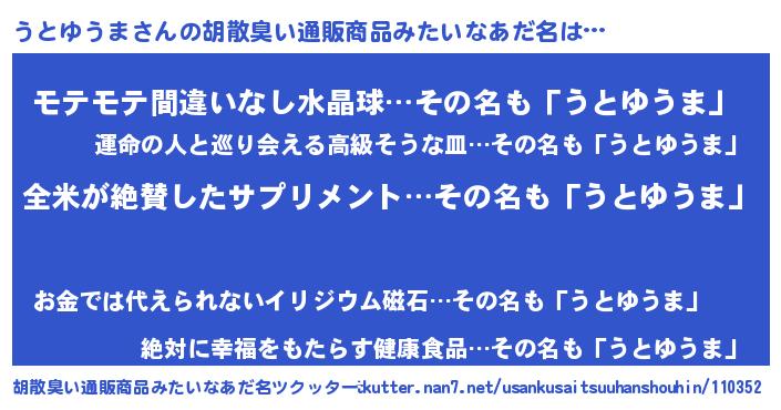 | 欧米人風あだ名 | 『アンジェラ・うとゆうま』 |
