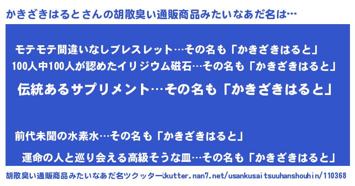 | 意味不明あだ名 | 『とにかく怪しいかきざきはると』 |
