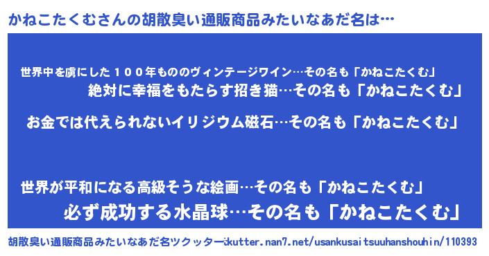 | 意味不明あだ名 | 『眠気覚ましガムかねこたくむ味』 |