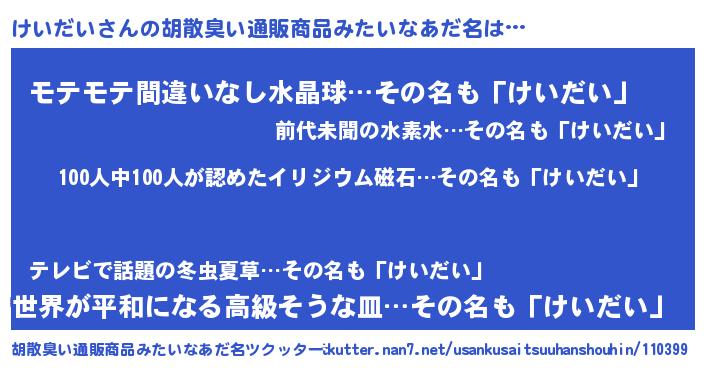 | ヒーロー風カッコイイあだ名 | 『友情の使者けいだい』『ネオケイダイ』 |