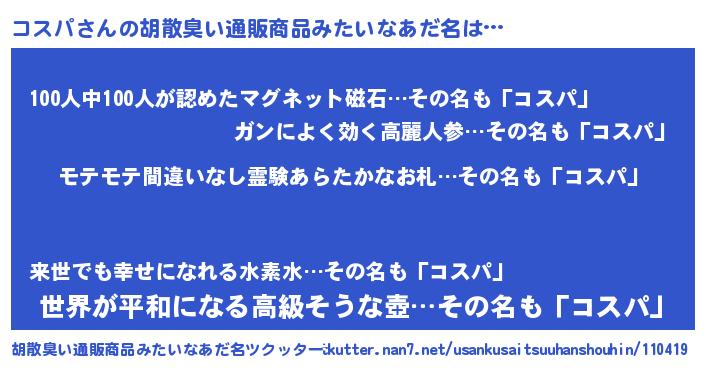 コスパさんの胡散臭い通販商品みたいなあだ名をツクッター!