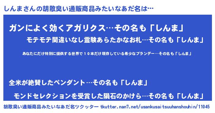| 意味不明あだ名 | 『住所不定無職しんま(89歳)』『自称しんま』 |