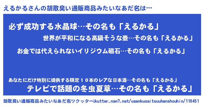 | 欧米人風あだ名 | 『ダニエルえるかる』『マイケルえるかる』 |