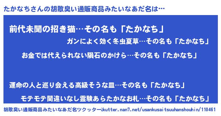 | ヘコむあだ名 | 『たかなち(苦笑)』『たかにー』 |
