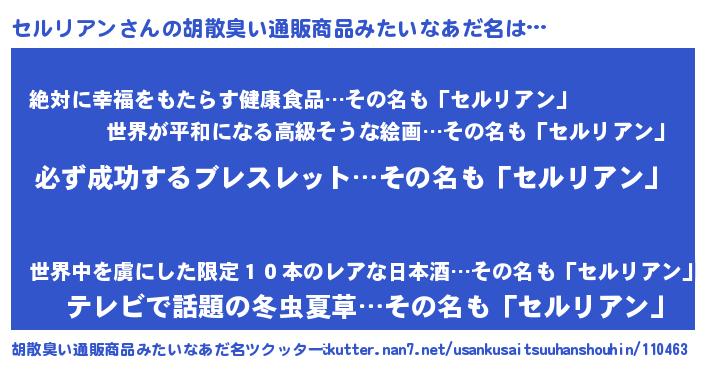 | ヘコむあだ名 | 『セルにー』『セルリアン(笑)』 |