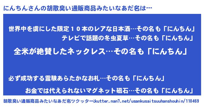 | 意味不明あだ名 | 『とにかく怪しいにんちん』 |