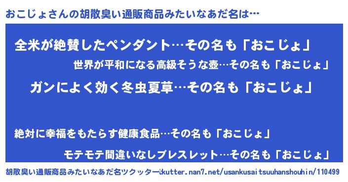 | 女子向けラノベタイトル風あだ名 | 『おこじょなんてお断りですっ。』 |