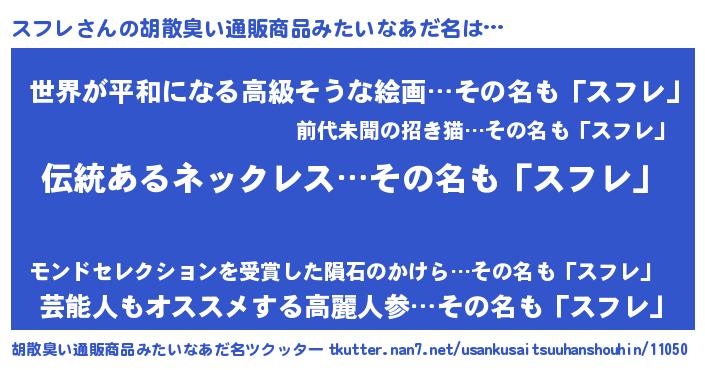 | 意味不明あだ名 | 『とにかく怪しいスフレ』『自称スフレ』 |
