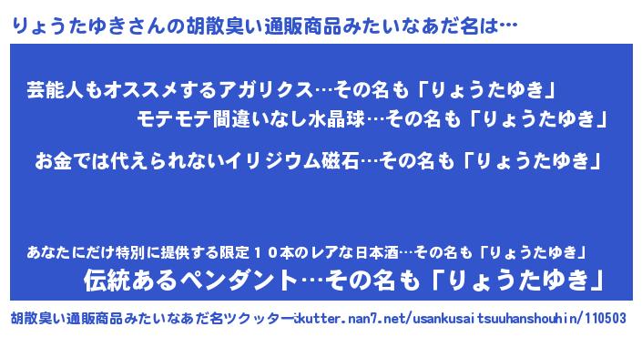 | 意味不明あだ名 | 『眠気覚ましガムりょうたゆき味』 |