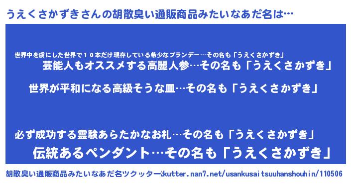| 意味不明あだ名 | 『うえくさかずきフォーエバー』 |
