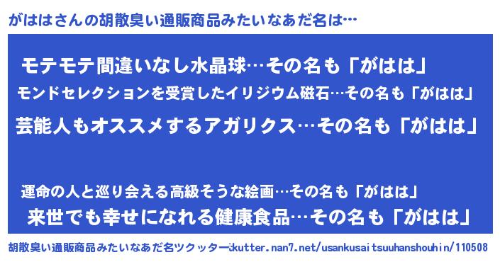 | ヘコむあだ名 | 『がはもー』『がはは(苦笑)』『豆乳』 |