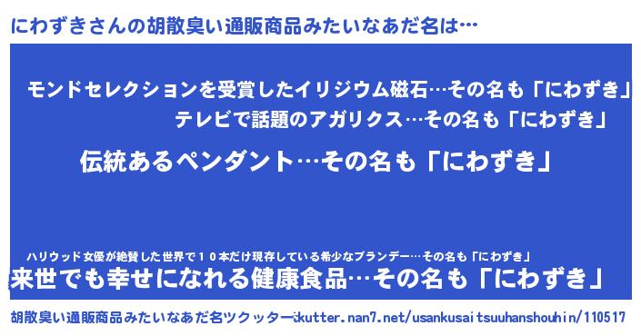 | ヘコむあだ名 | 『にわぷりん』『にわずき(笑)』 |