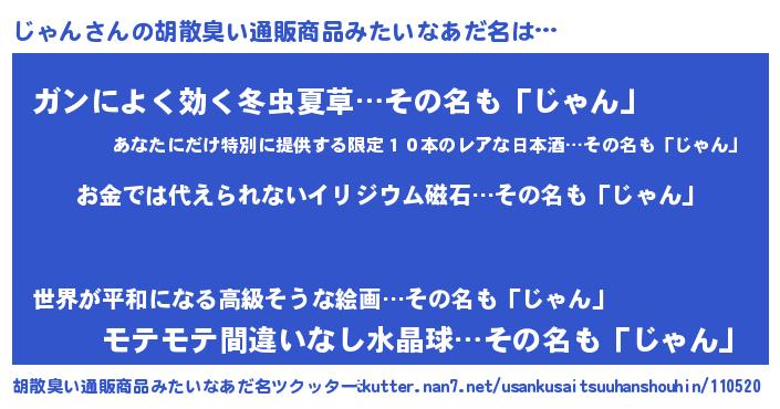 | ヒーロー風カッコイイあだ名 | 『慈愛の使者じゃん』『超時空戦士ジャン』 |