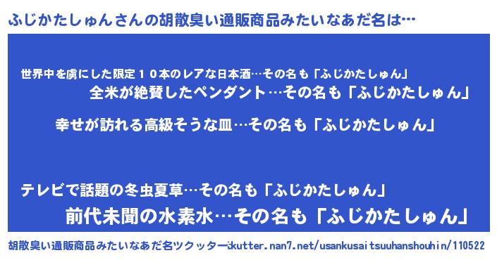 | 意味不明あだ名 | 『ふじかたしゅんフォーエバー』 |