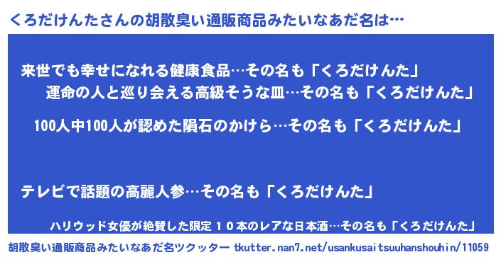 くろだけんたさんの胡散臭い通販商品みたいなあだ名をツクッター!