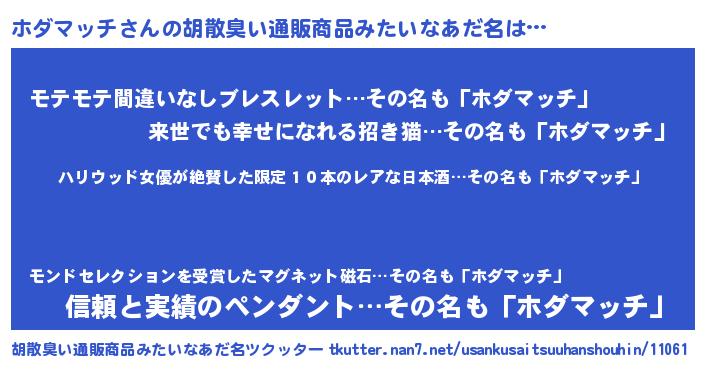 | 意味不明あだ名 | 『住所不定無職ホダマッチ(50歳)』 |
