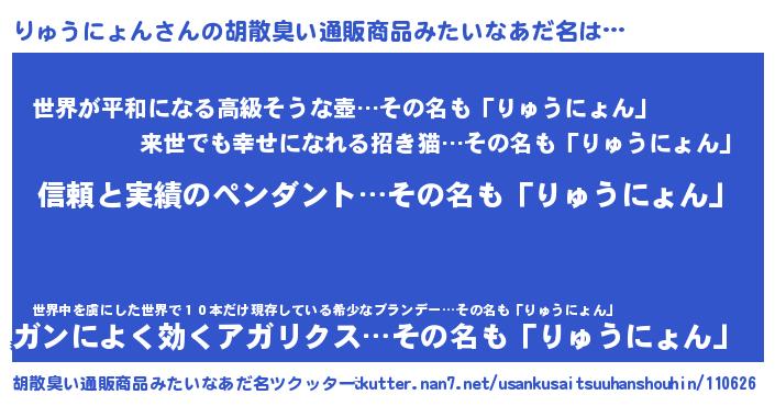 | 意味不明あだ名 | 『とにかく怪しいりゅうにょん』 |