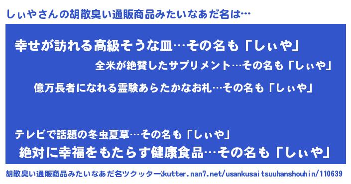 | 意味不明あだ名 | 『ペロリンしぃや』『しぃやフォーエバー』 |