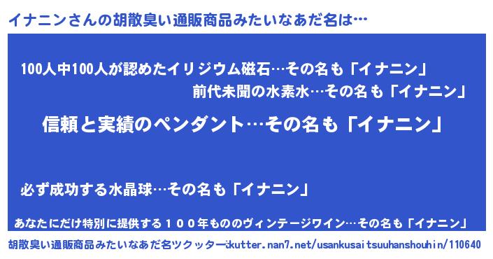 | 意味不明あだ名 | 『とにかく怪しいイナニン』 |