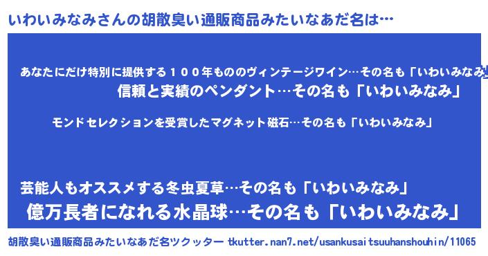 | ヘコむあだ名 | 『いわにー』『いわを』『酢こんぶ』 |