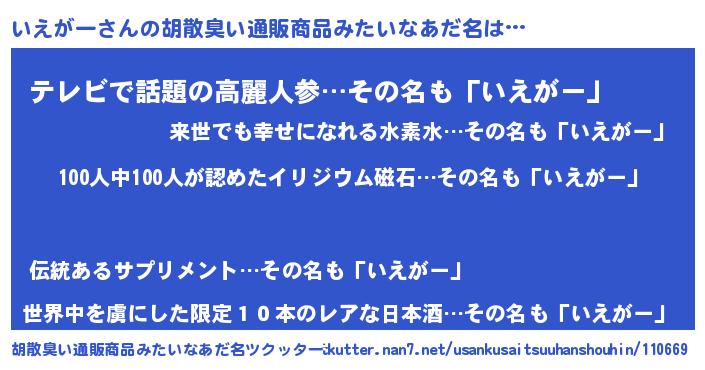 | ヘコむあだ名 | 『いえがー(苦笑)』『いえ太郎』 |