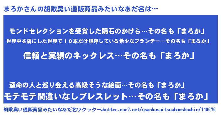 | 意味不明あだ名 | 『とにかく怪しいまろか』 |